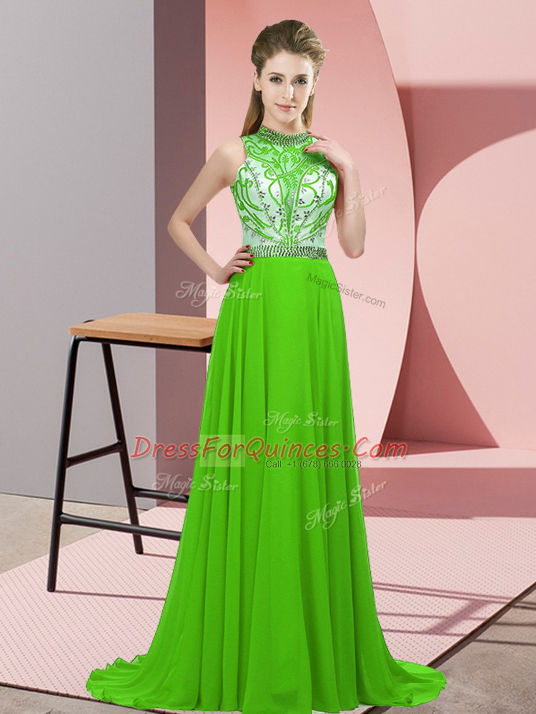 Eye-catching Prom and Party with Beading Halter Top Sleeveless Brush Train Backless