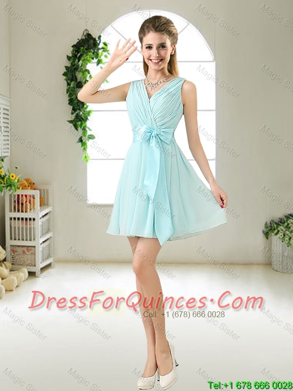Fashionable V Neck Bowknot Prom Dresses in Mini Length