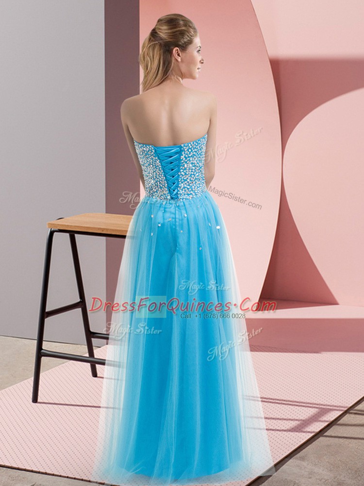 Fuchsia Lace Up Prom Dress Beading Sleeveless Floor Length