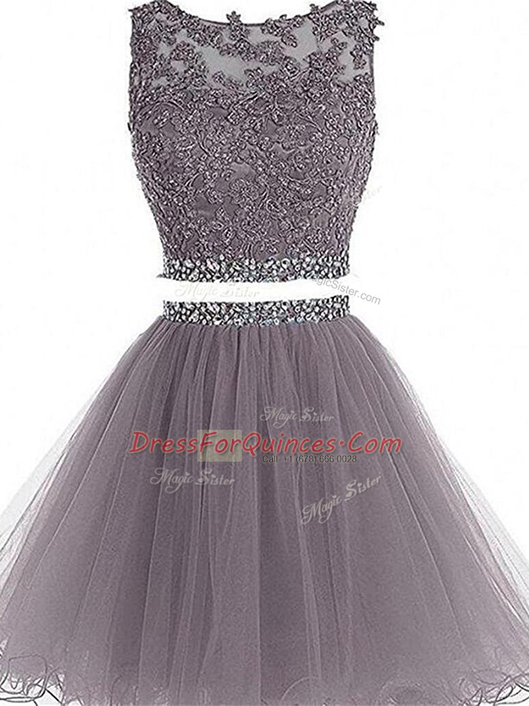 Grey Zipper Homecoming Dress Beading and Lace and Appliques Sleeveless Mini Length