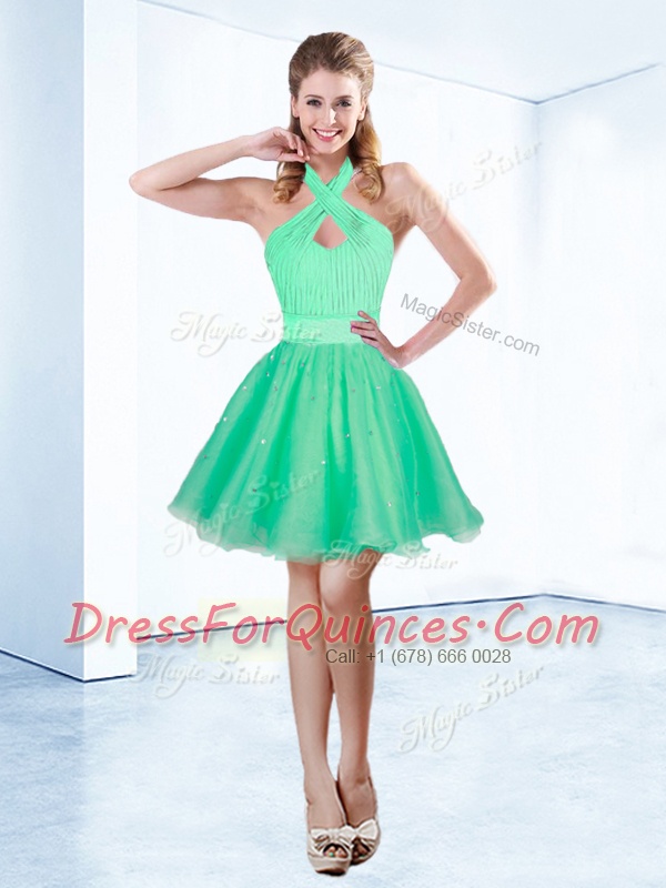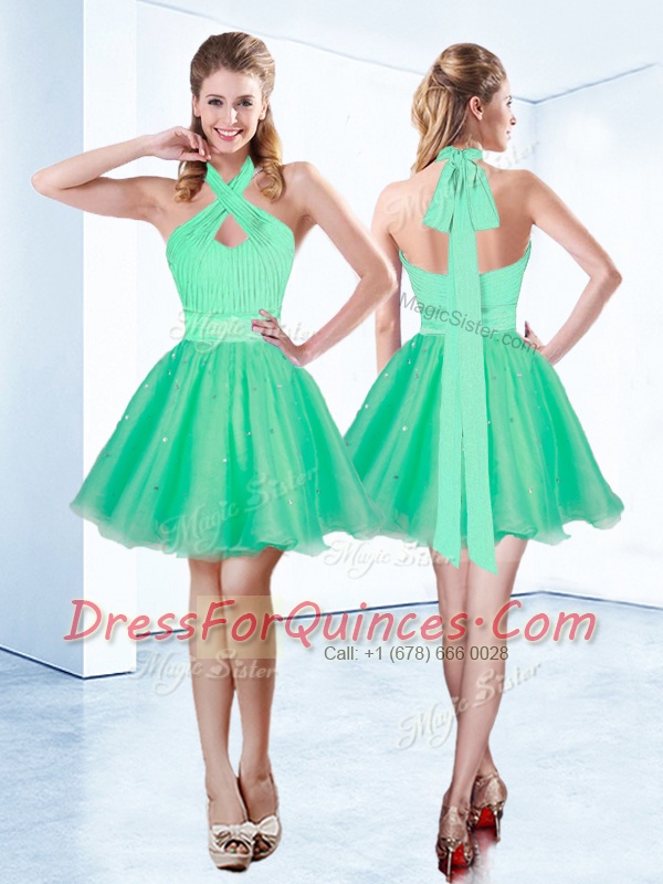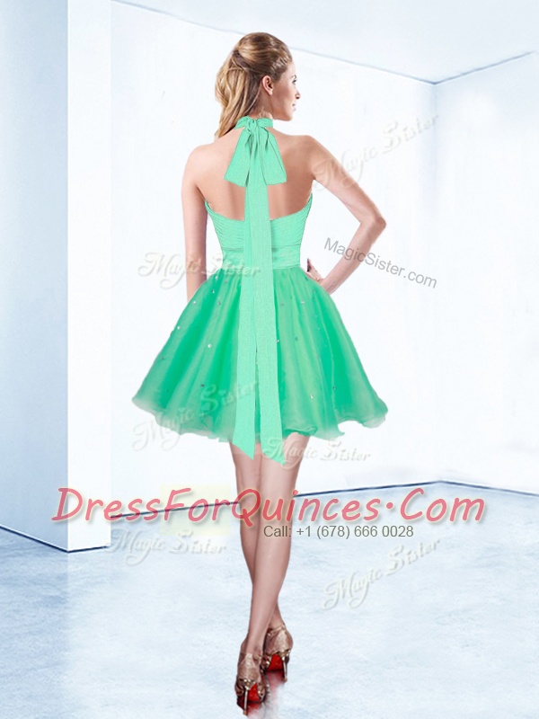 Halter Top Sleeveless Zipper Mini Length Ruching and Belt Homecoming Dress