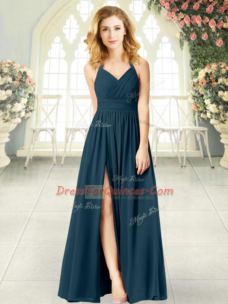 Halter Top Sleeveless Zipper Prom Dresses Teal Chiffon