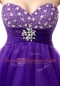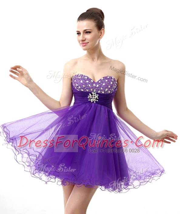 Ideal Sweetheart Sleeveless Evening Dress Knee Length Beading Purple Organza