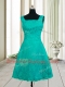 Lace Mini Length Turquoise Square Sleeveless Zipper