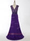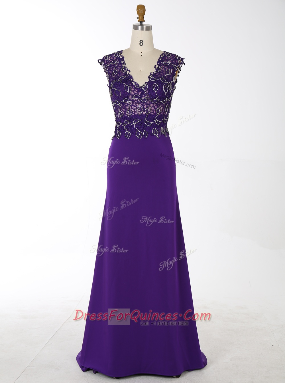 Mermaid Purple Zipper V-neck Beading Homecoming Dress Chiffon Sleeveless Brush Train
