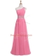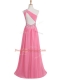 Rose Pink Empire Chiffon One Shoulder Sleeveless Beading and Ruching Floor Length Backless Prom Party Dress
