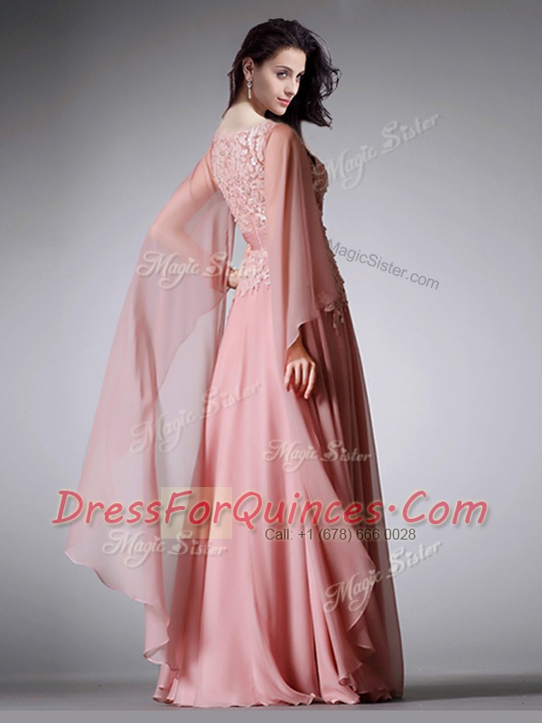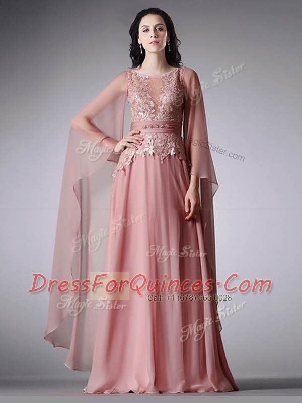 Scoop 3 4 Length Sleeve Zipper Floor Length Lace and Belt Prom Party Dress