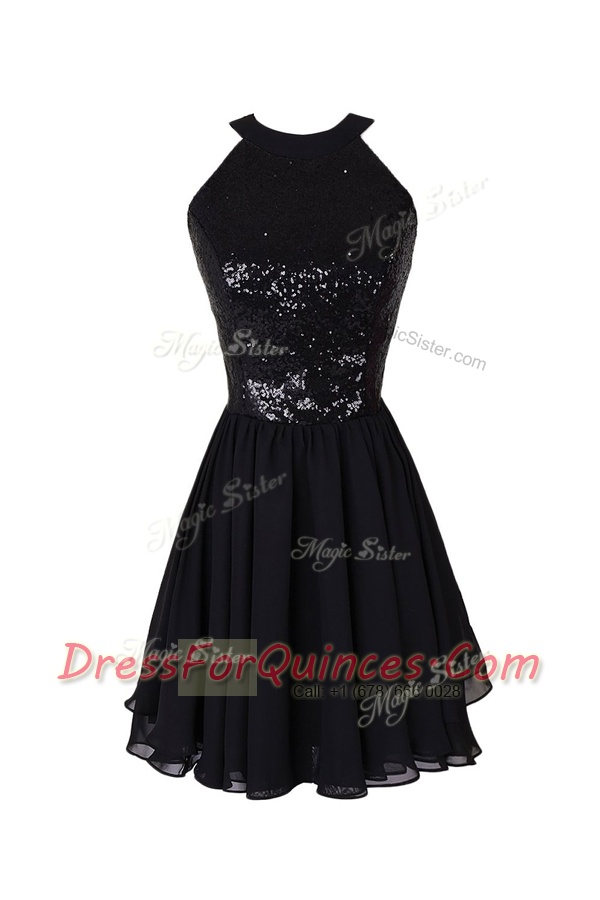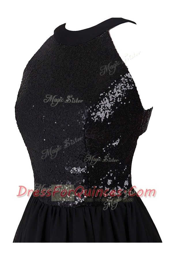 Scoop Black Sleeveless Sequins Knee Length Prom Evening Gown