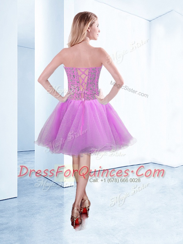 Sexy Sleeveless Lace Up Knee Length Beading Prom Gown