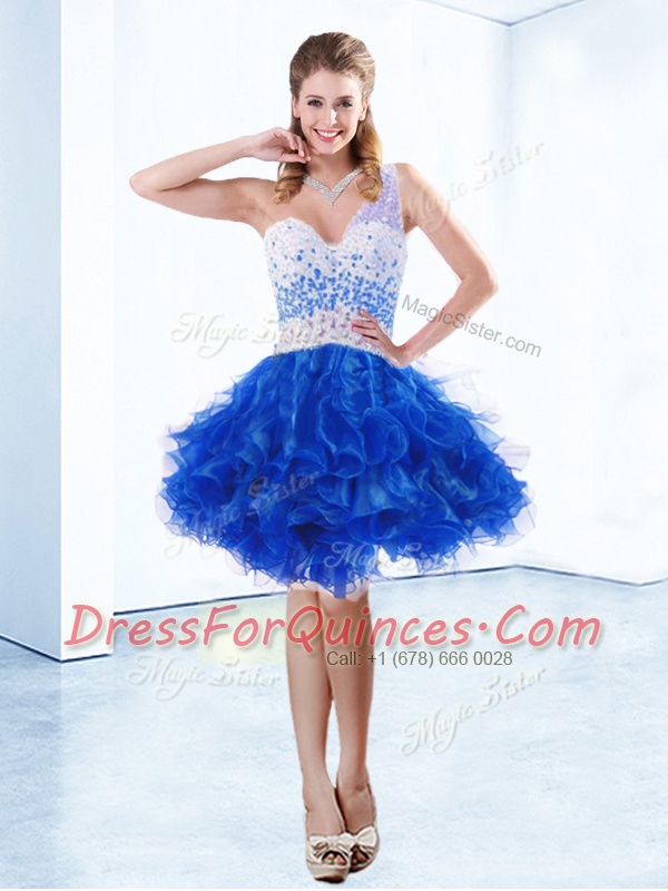 Spectacular One Shoulder Knee Length A-line Sleeveless Royal Blue Dress for Prom Criss Cross
