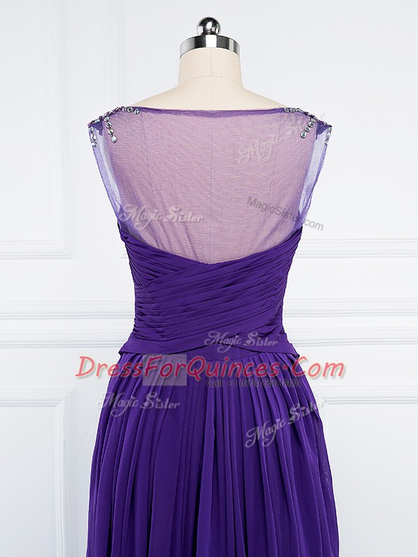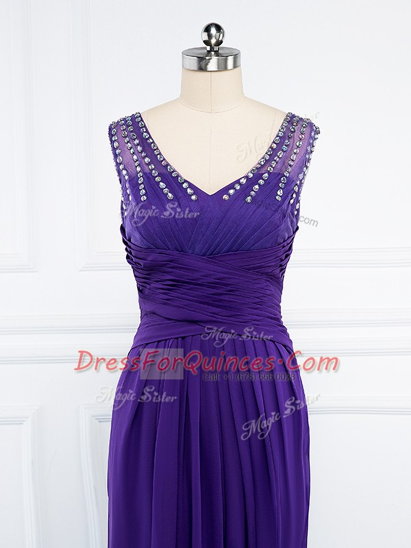 V-neck Sleeveless Side Zipper Homecoming Dress Purple Chiffon