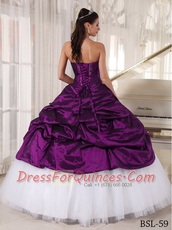 2014 Eggplant Purple And White Sweetheart Floor-length Cheap Quinceanera Dresses