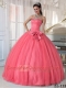 2014 Watermelon Ball Gown Lace-up Sweetheart Floor-length Cheap Quinceanera Dresses