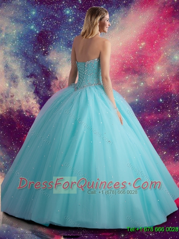 2015 Beautiful Sweetheart Beaded Quinceanera Dress in Aqua Blue