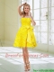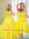 2015 Decent Rolling Flowers and Bowknot Yellow Cheap Dresses for Quince