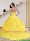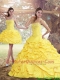 2015 Perfect Yellow Cheap Strapless Brush Train Quinceanera Dresses with Beading