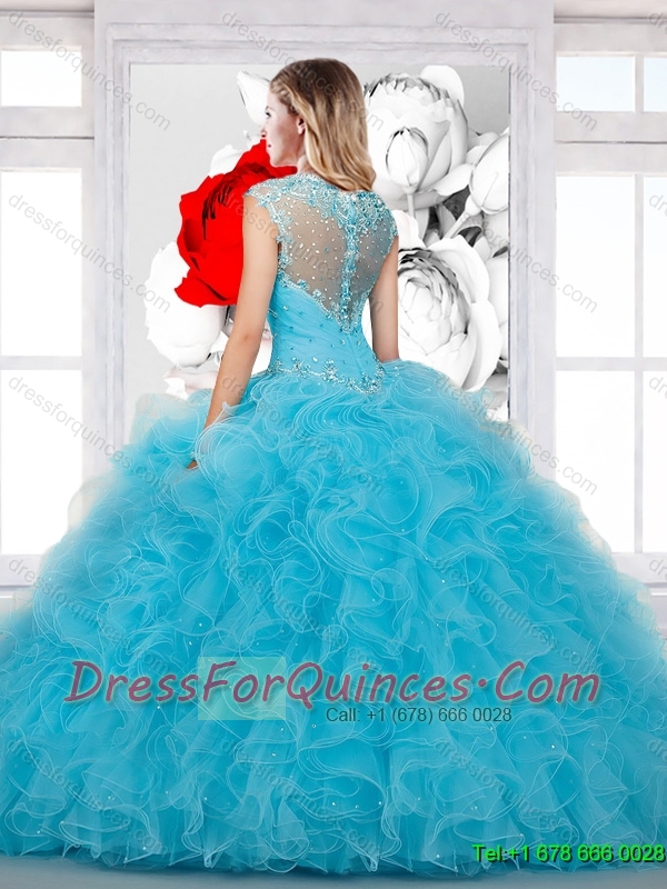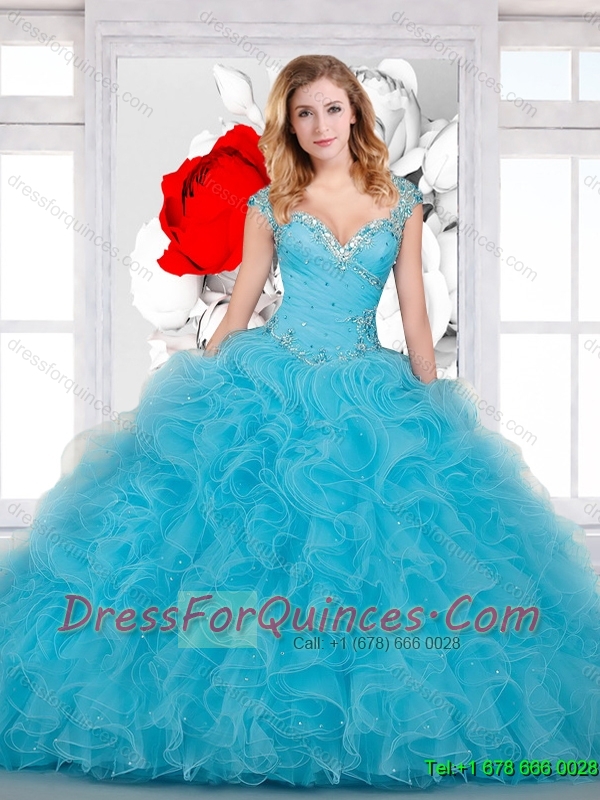 2016 Perfect Ball Gown Beaded and Ruffles Sweet 16 Dress in Aqua Blue