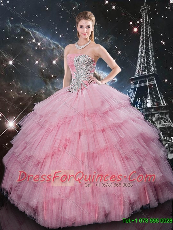 2016 Pretty Beaded Strapless Pink Sweet 16 Dresses with Floor Length