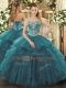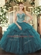 Admirable Turquoise Tulle Lace Up Sweetheart Sleeveless Floor Length Sweet 16 Quinceanera Dress Beading and Ruffles