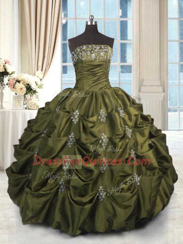 Artistic Taffeta Sleeveless Floor Length Sweet 16 Dress and Beading and Appliques and Embroidery and Pick Ups