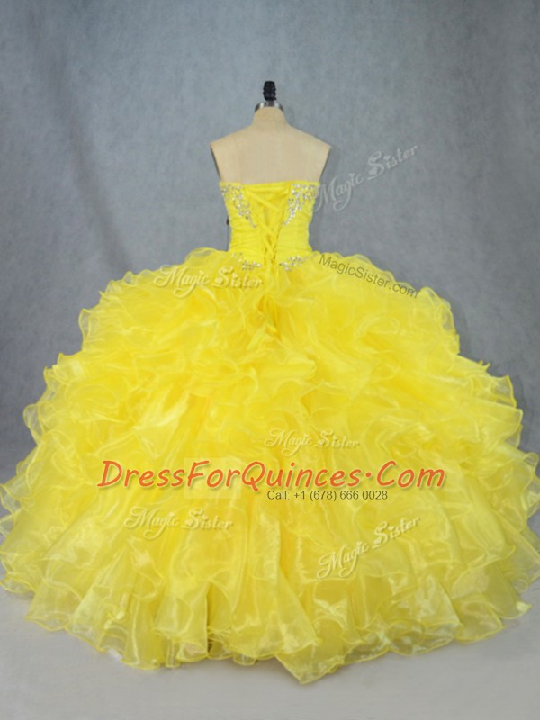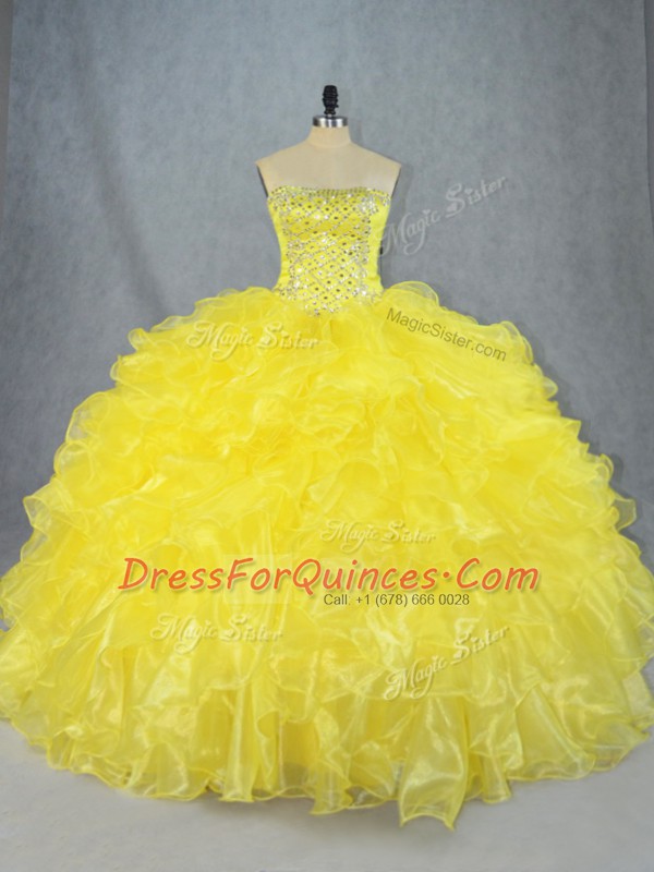 Asymmetrical Yellow 15th Birthday Dress Strapless Sleeveless Lace Up