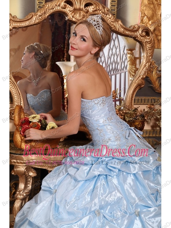 Baby Blue Ball Gown Sweetheart Floor-length Taffeta Embroidery with Beading Quinceanera Dress