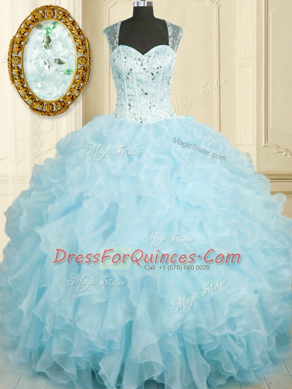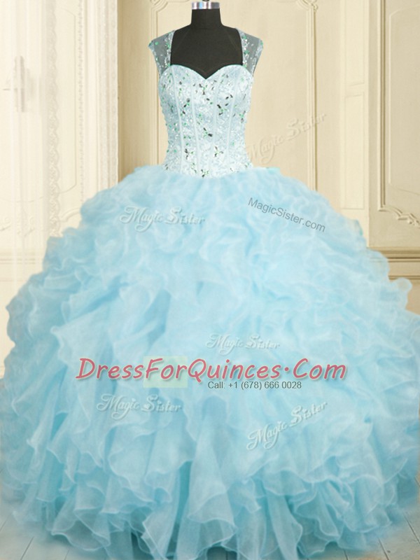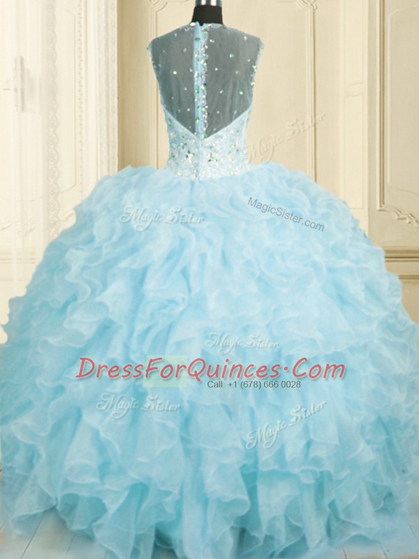 Baby Blue Sleeveless Organza Lace Up Quinceanera Dress for Military Ball and Sweet 16 and Quinceanera