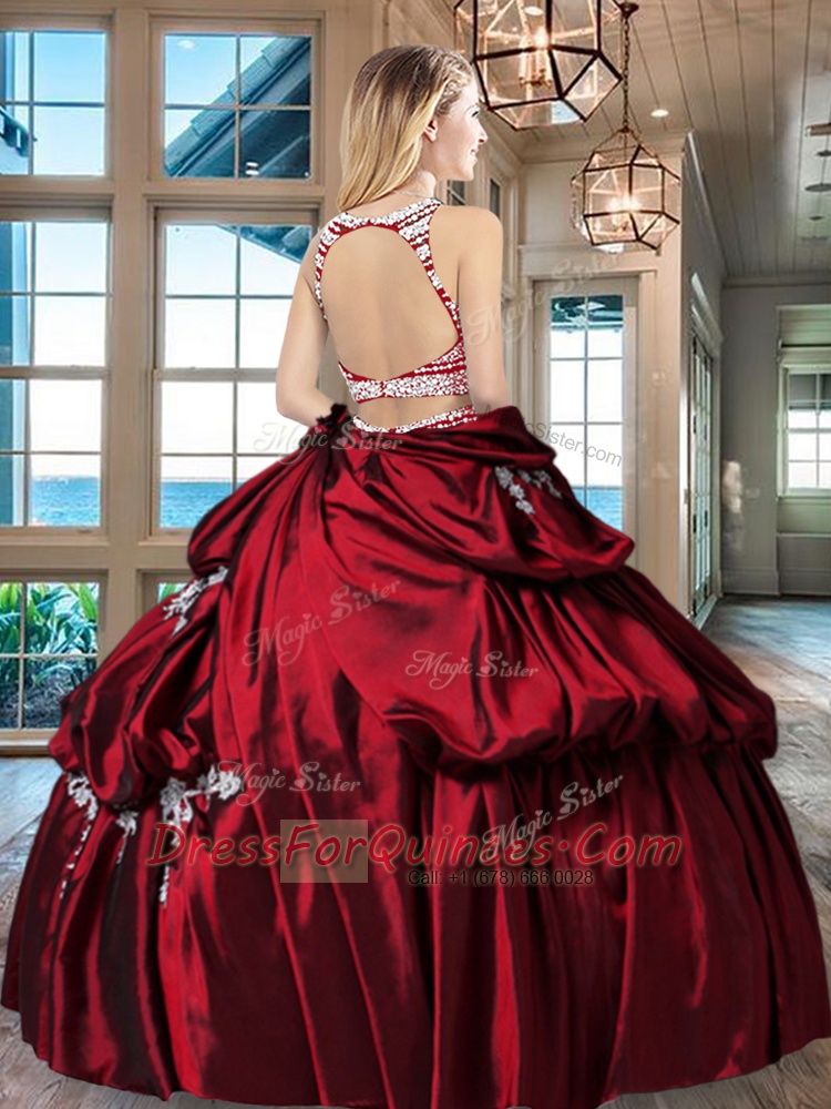 Backless Scoop Sleeveless Sweet 16 Dress Floor Length Beading and Appliques and Pick Ups Fuchsia Taffeta