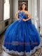 Ball Gown Beaded Royal Blue Sweet 16 Dress with Appliques and Bowknot