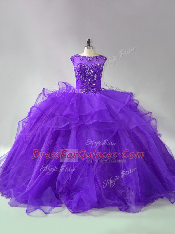 Ball Gowns Sleeveless Purple Quinceanera Dress Brush Train Lace Up