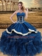 Beautiful Blue Sleeveless Floor Length Beading and Ruffles Lace Up Sweet 16 Dress