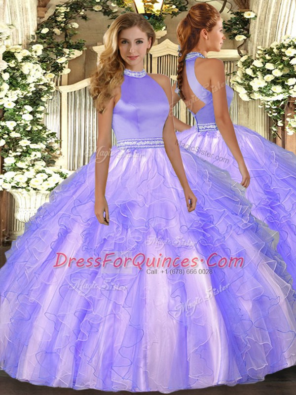 Best Floor Length Ball Gowns Sleeveless Lavender Quinceanera Dresses Backless