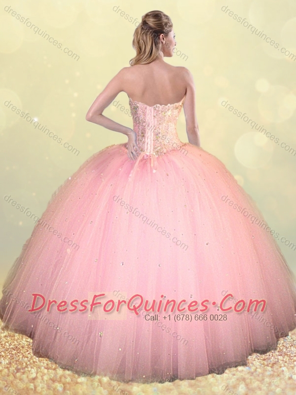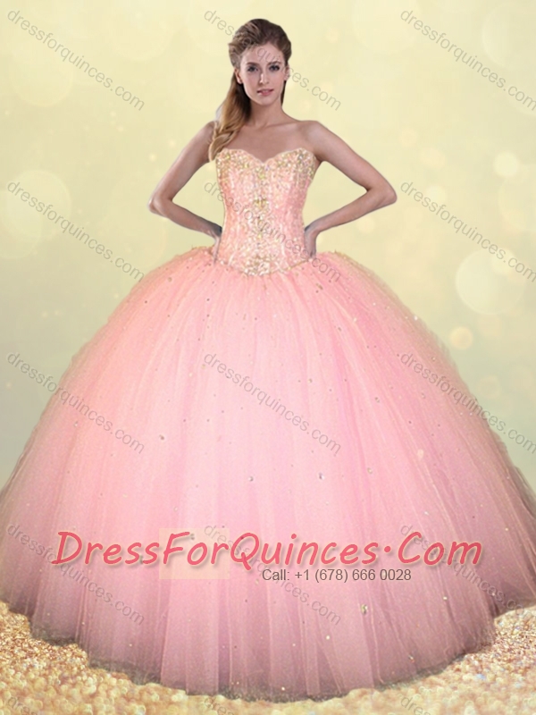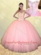 Big Puffy Beaded Baby Pink Quinceanera Dress in Tulle