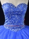 Blue Lace Up Sweetheart Beading Quince Ball Gowns Tulle Sleeveless