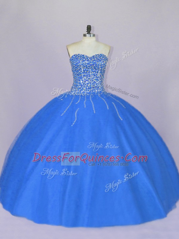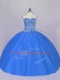 Blue Lace Up Sweetheart Beading Vestidos de Quinceanera Tulle Sleeveless