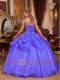 Blue Taffeta And Organza Ball Gown Sweetheart Floor-length Appliques Cheap Quinceanera Dresses