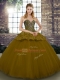 Brown Ball Gowns Tulle Sweetheart Sleeveless Beading and Appliques Floor Length Lace Up Sweet 16 Quinceanera Dress
