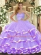 Cheap Lavender Sleeveless Floor Length Ruffled Layers Lace Up Vestidos de Quinceanera
