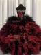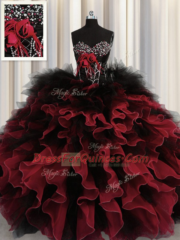 Chic Red And Black Lace Up Quince Ball Gowns Beading and Ruffles Sleeveless Floor Length
