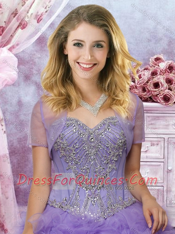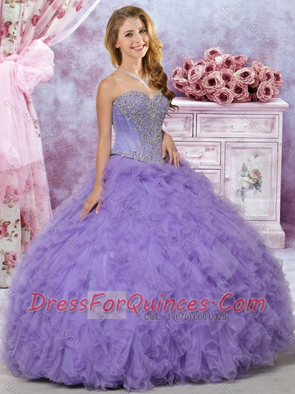 Classical Big Puffy Beaded and Ruffled Quinceanera Dress in Lavender