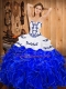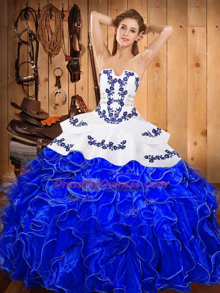Classical Floor Length Ball Gowns Sleeveless Blue And White Sweet 16 Dress Lace Up