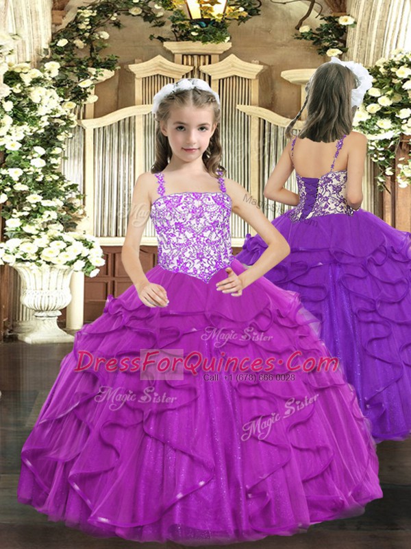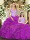 Clearance Floor Length Ball Gowns Sleeveless Fuchsia 15 Quinceanera Dress Lace Up