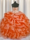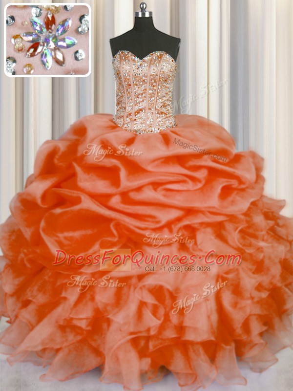 Clearance Orange Red Organza Lace Up 15 Quinceanera Dress Sleeveless Floor Length Beading and Ruffles and Pick Ups
