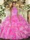 Custom Fit Floor Length Ball Gowns Sleeveless Rose Pink Quinceanera Dress Backless