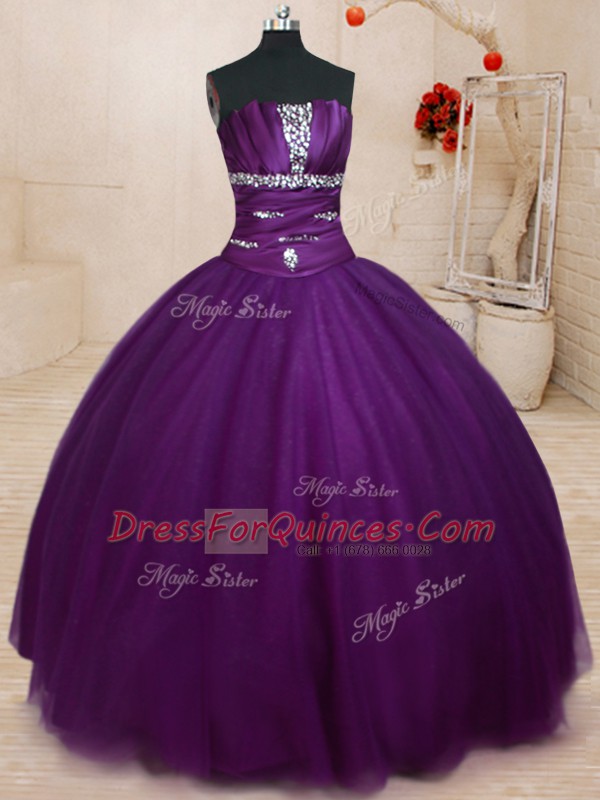 Dark Purple Sweet 16 Quinceanera Dress Military Ball and Sweet 16 and Quinceanera and For with Beading Strapless Sleeveless Lace Up