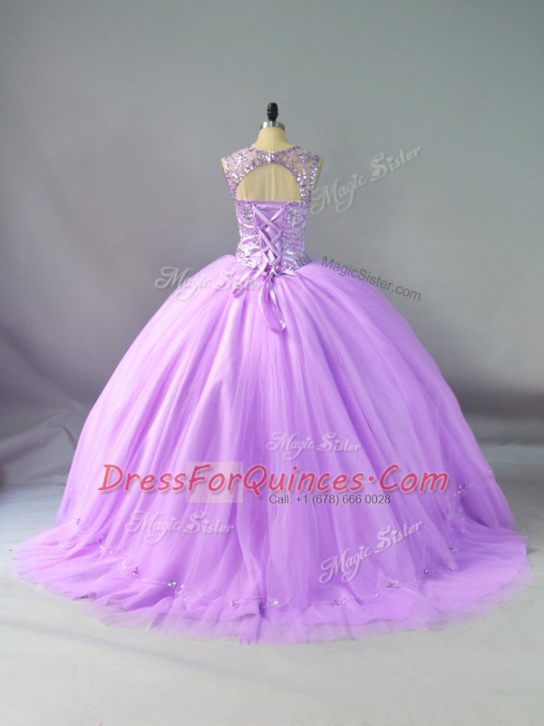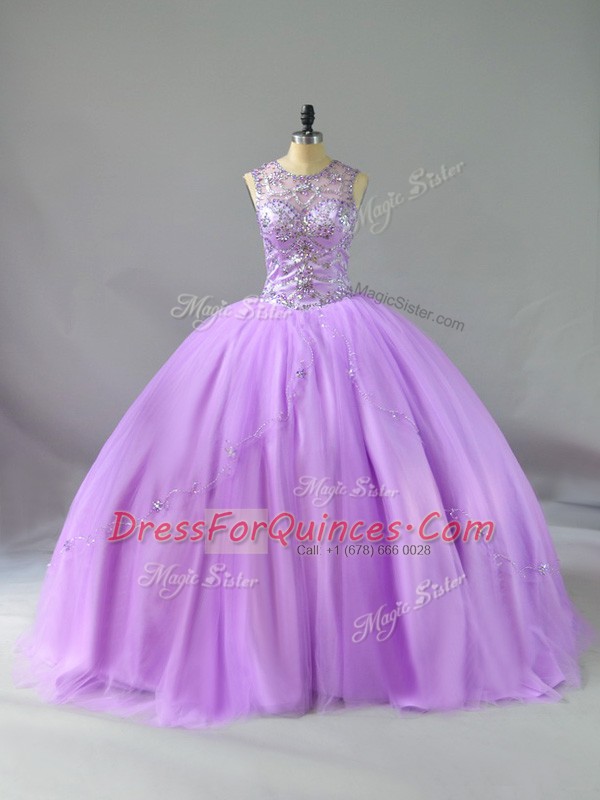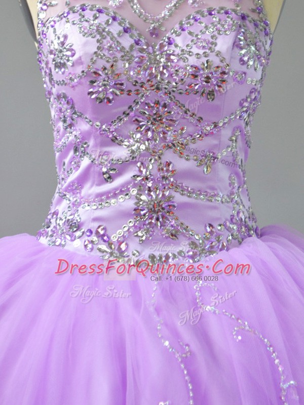 Decent Lavender Lace Up 15 Quinceanera Dress Beading Sleeveless Floor Length