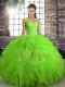 Delicate Floor Length Quince Ball Gowns Tulle Sleeveless Beading and Ruffles