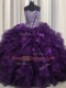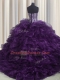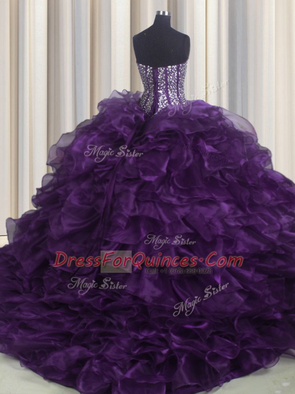 Deluxe Bling-bling Sweetheart Sleeveless Vestidos de Quinceanera With Brush Train Beading and Ruffles Purple Organza