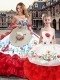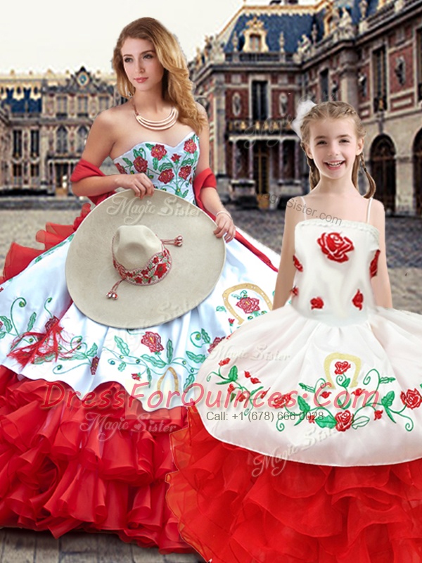 Discount Floor Length Lace Up Quinceanera Dress White And Red for Sweet 16 and Quinceanera with Embroidery