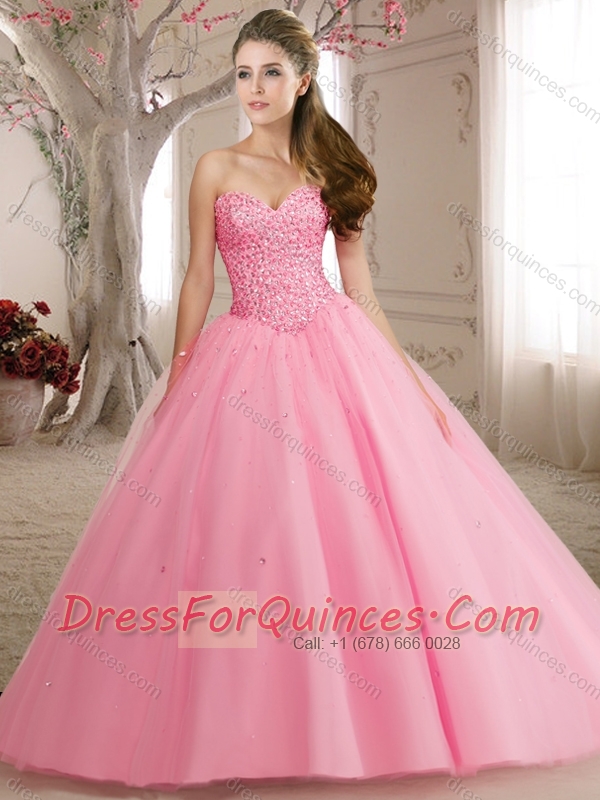 Discount Sweetheart Tulle Beaded Bodice Quinceanera Dress in Rose Pink